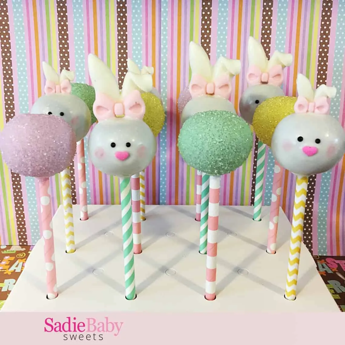Our cake pops have a truffle-like consistency and they are as delicious as they look. A fully baked cake is reduced to crumbs and blended with frosting, then formed into balls or desired shape. Finally dipped in chocolate and decorated to your specifications.