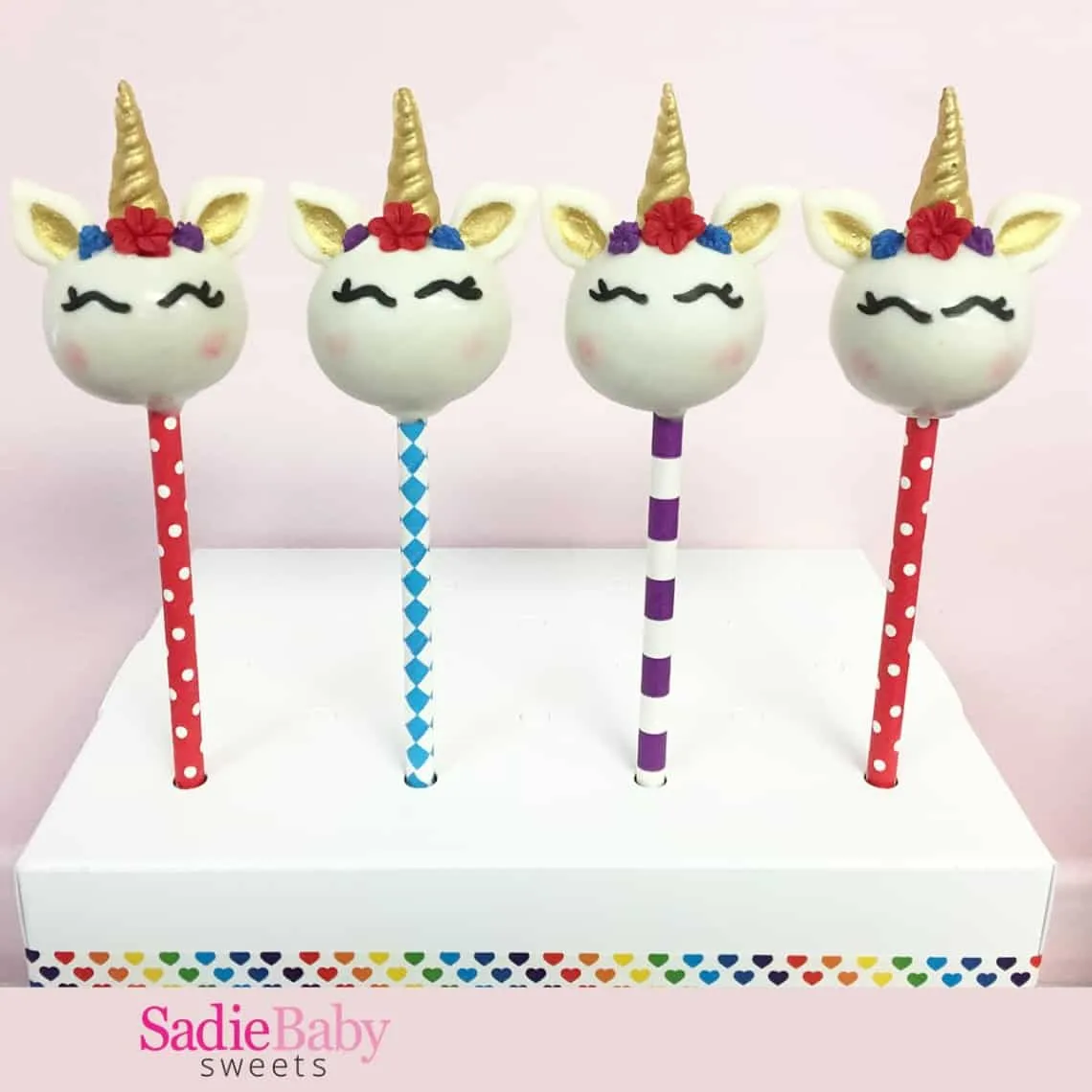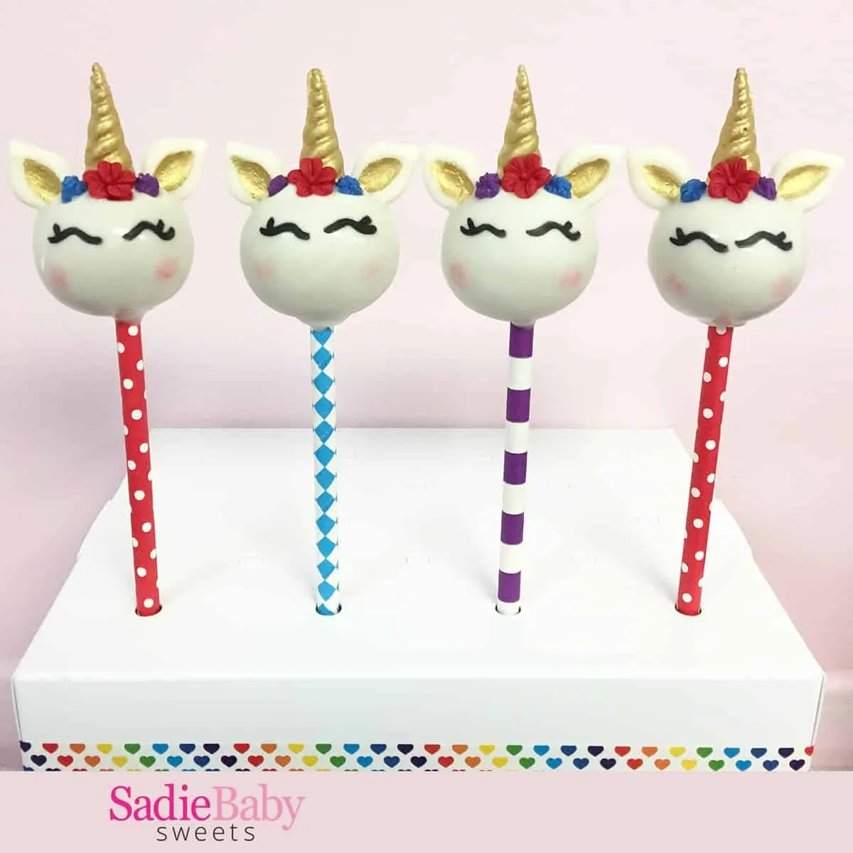 Our cake pops have a truffle-like consistency and they are as delicious as they look. A fully baked cake is reduced to crumbs and blended with frosting, then formed into balls or desired shape. Finally dipped in chocolate and decorated to your specifications.